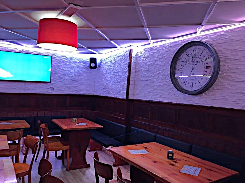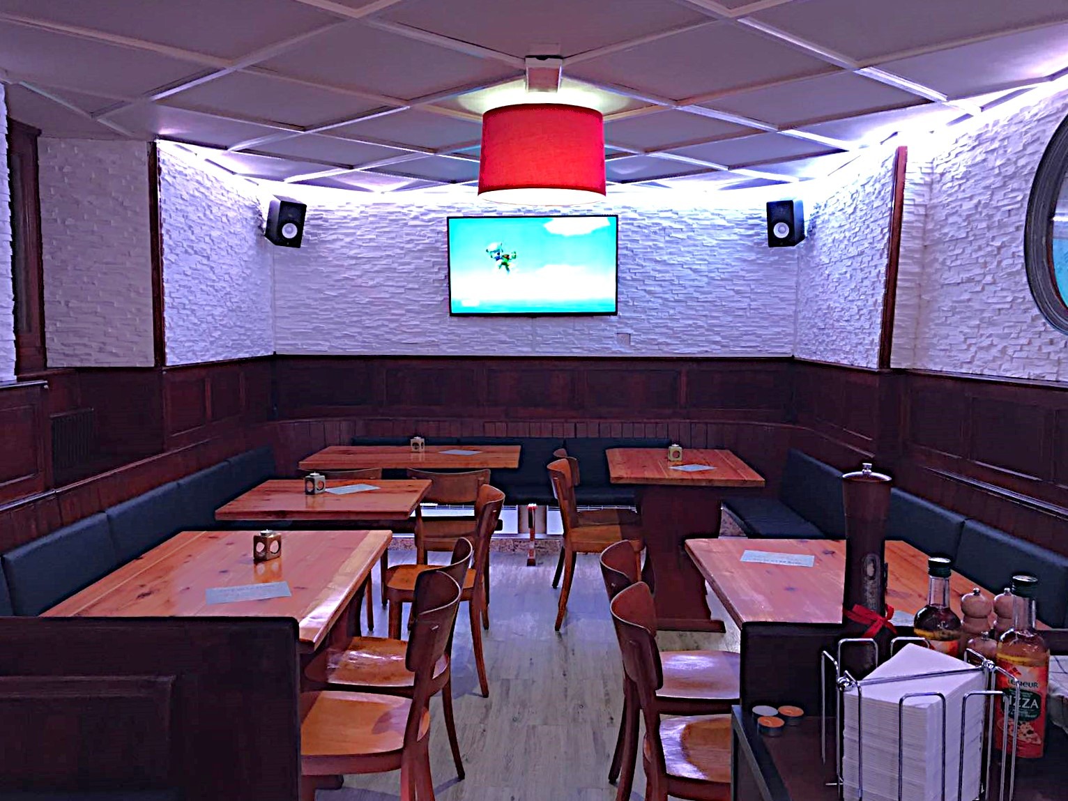 • Intérieur élégant de 40 places : Un espace soigneusement conçu avec un long comptoir de bar, et des étagères présentant une sélection de spiritueux.